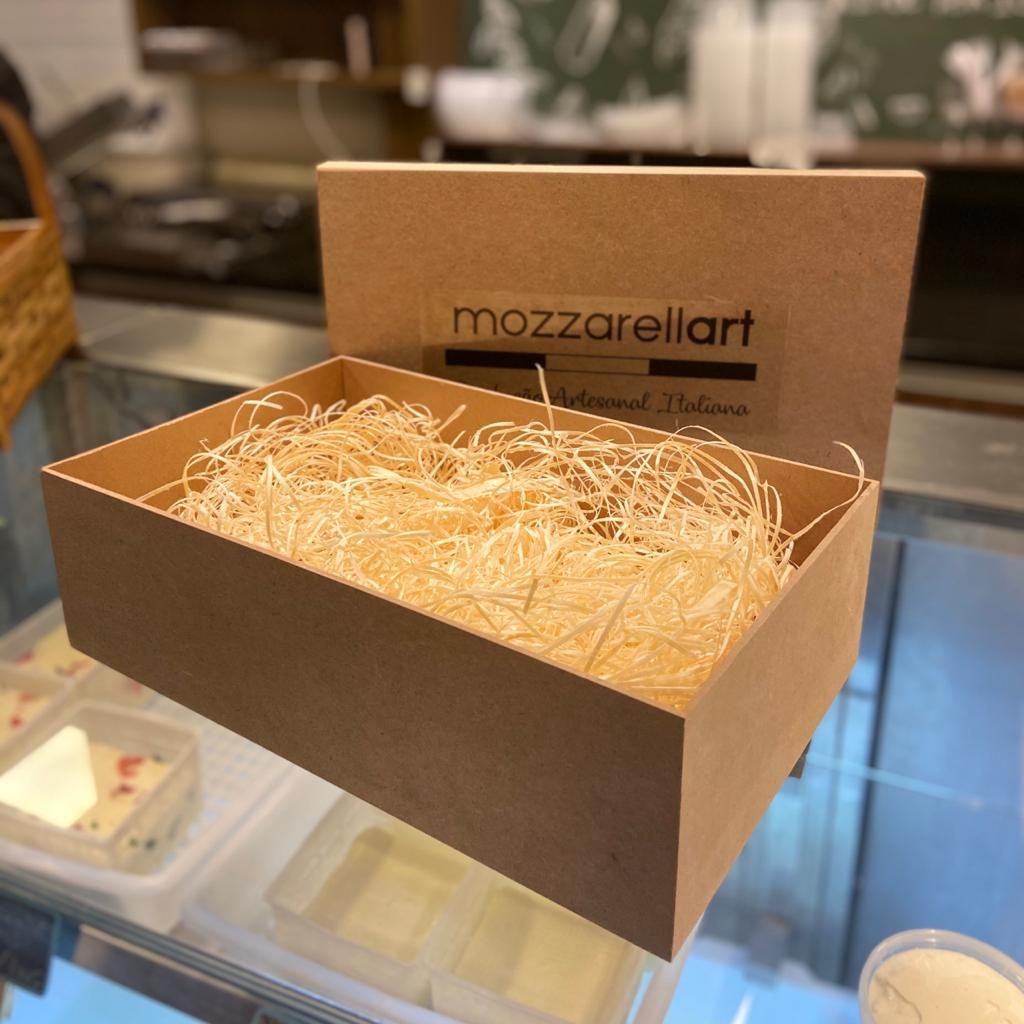 Uma caixa pra presente MozzaBox com palha. Somente a caixa.
